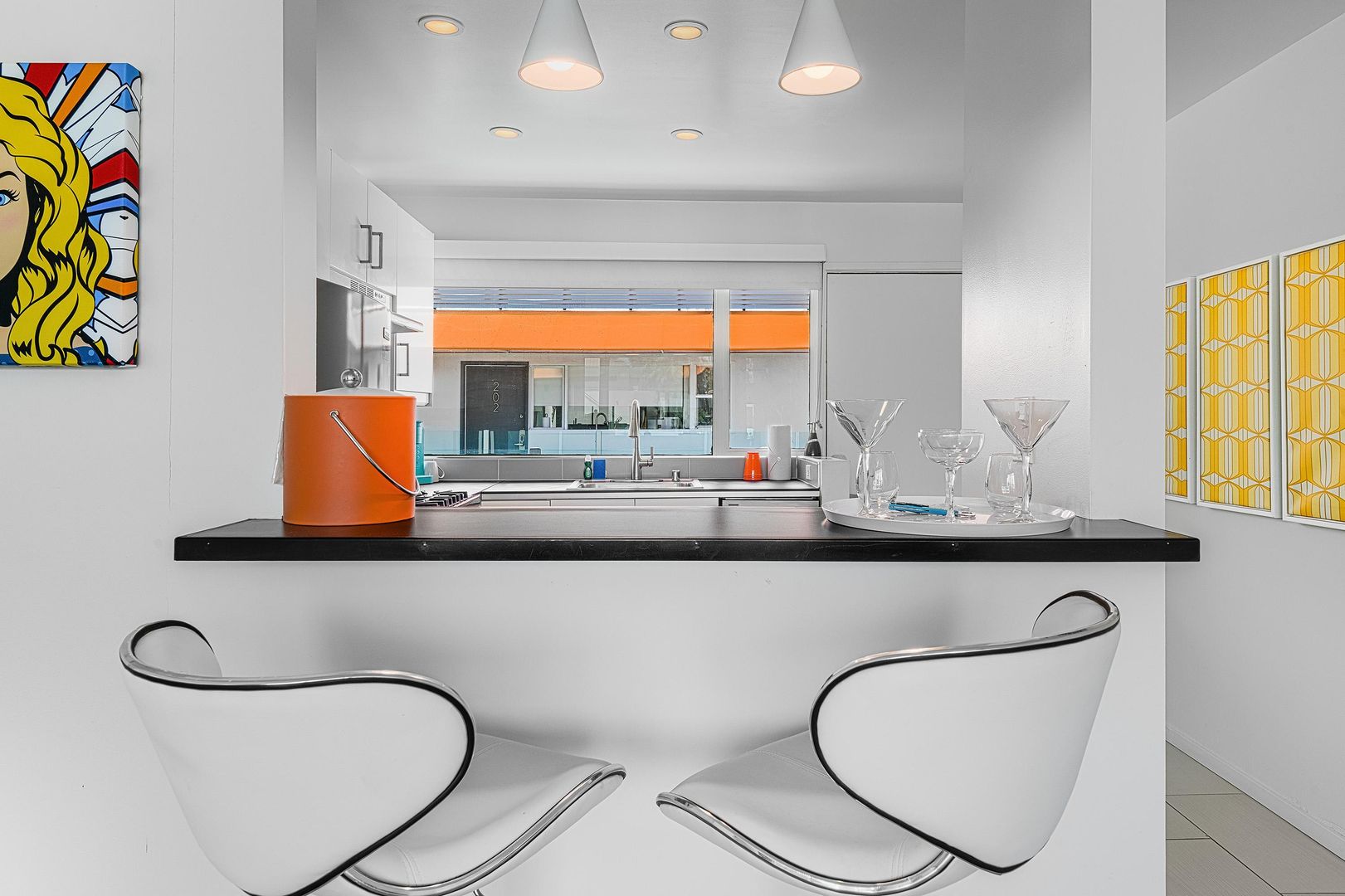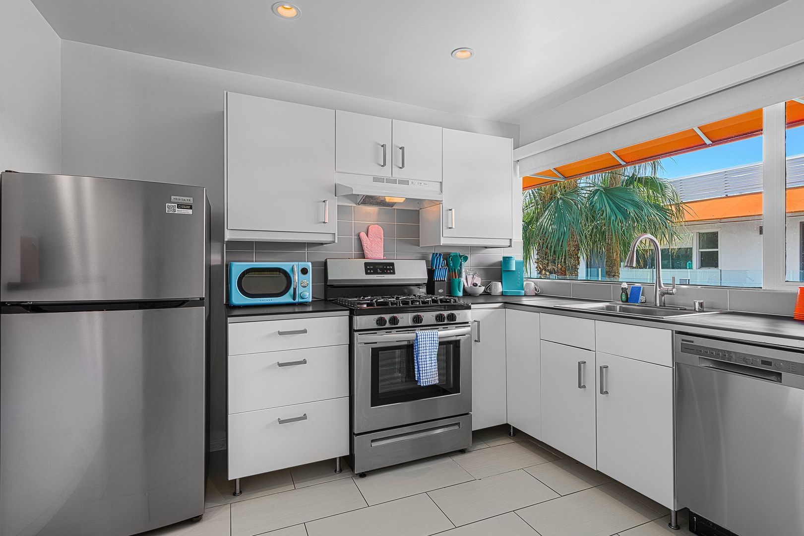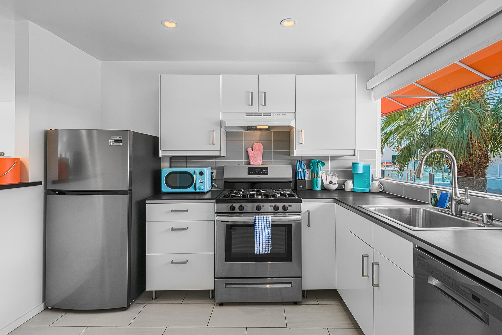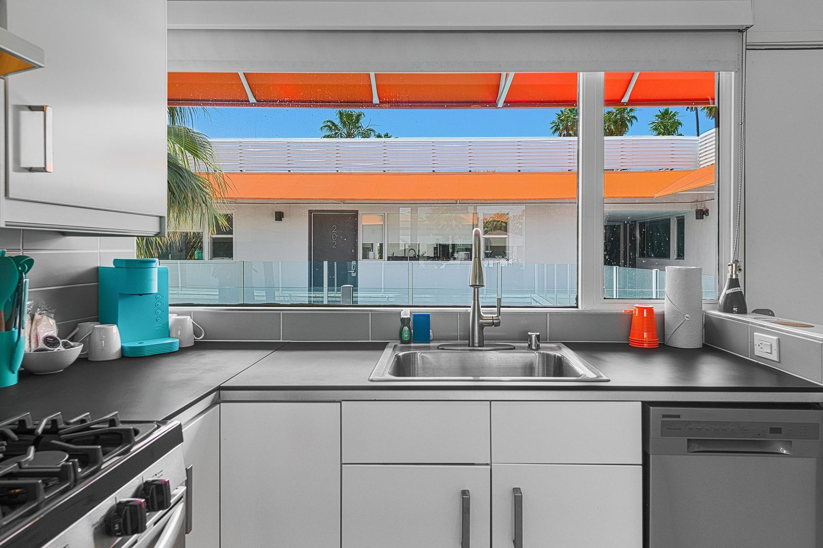 Discover the ultimate blend of comfort and style in this fully furnished studio apartment available for rent in the heart of Palm Springs. Situated in the vibrant Uptown Design District, this 629 sq. ft. gem offers a perfect retreat with a 30-day minimum stay requirement. Step inside to find a spacious layout featuring a full kitchen equipped with a dishwasher, making meal preparation a breeze. The living area extends to a private patio where you can unwind under orange umbrellas and awnings, enjoying the stunning views of the San Jacinto Mountains.