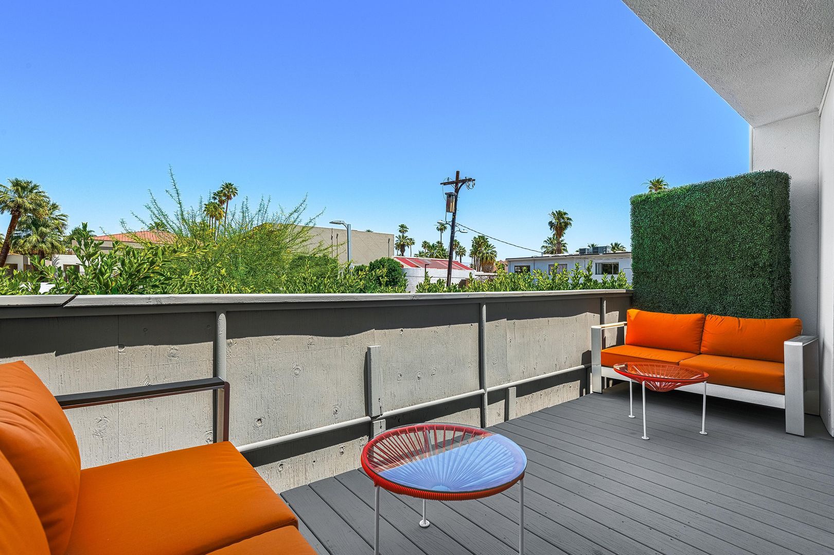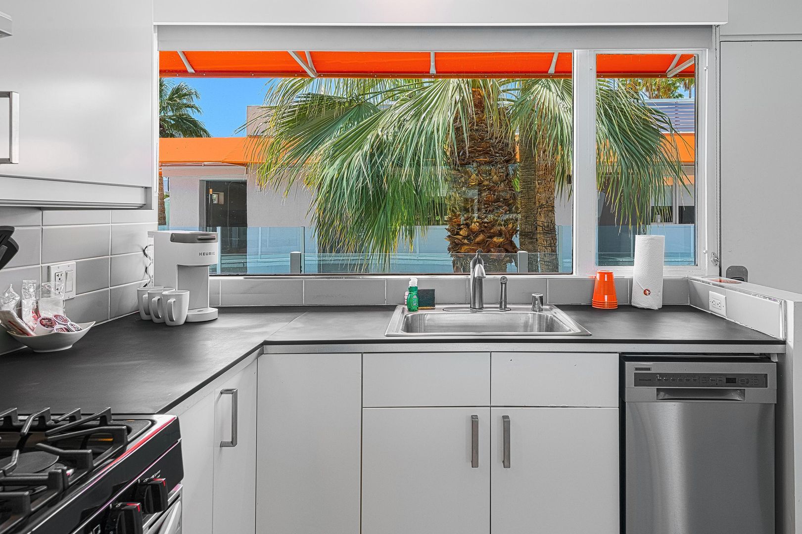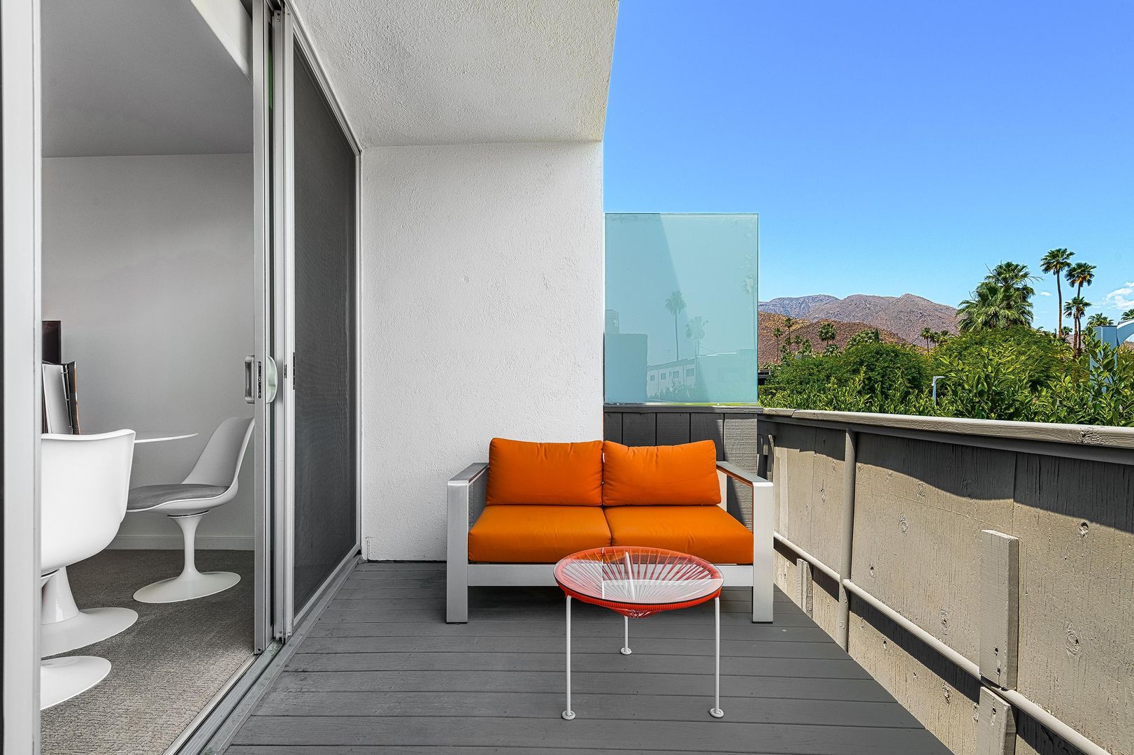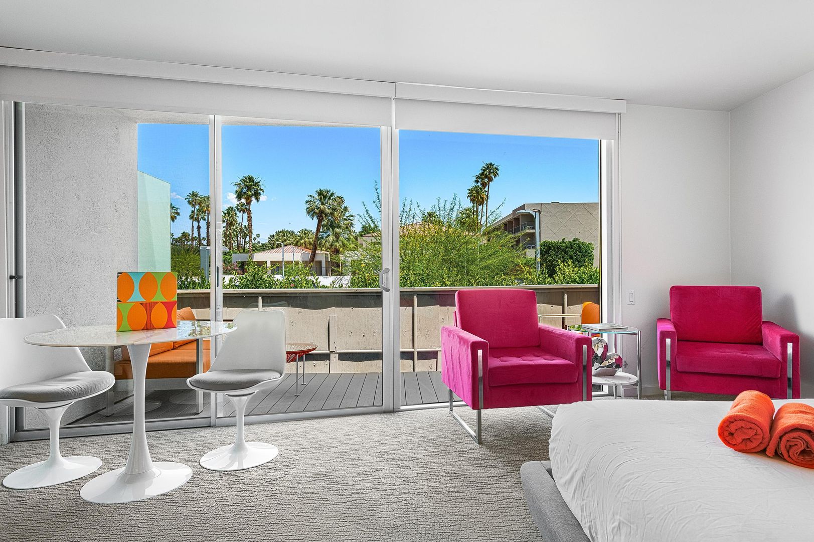 Discover the ultimate blend of comfort and style in this fully furnished studio apartment available for rent in the heart of Palm Springs. Situated in the vibrant Uptown Design District, this 629 sq. ft. gem offers a perfect retreat with a 30-day minimum stay requirement. Step inside to find a spacious layout featuring a full kitchen equipped with a dishwasher, making meal preparation a breeze. The living area extends to a private patio where you can unwind under orange umbrellas and awnings, enjoying the stunning views of the San Jacinto Mountains.