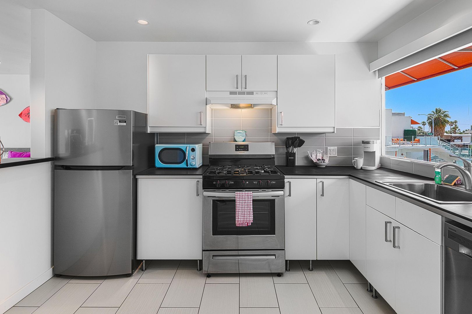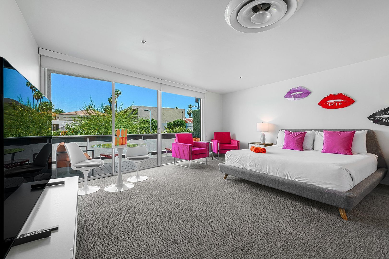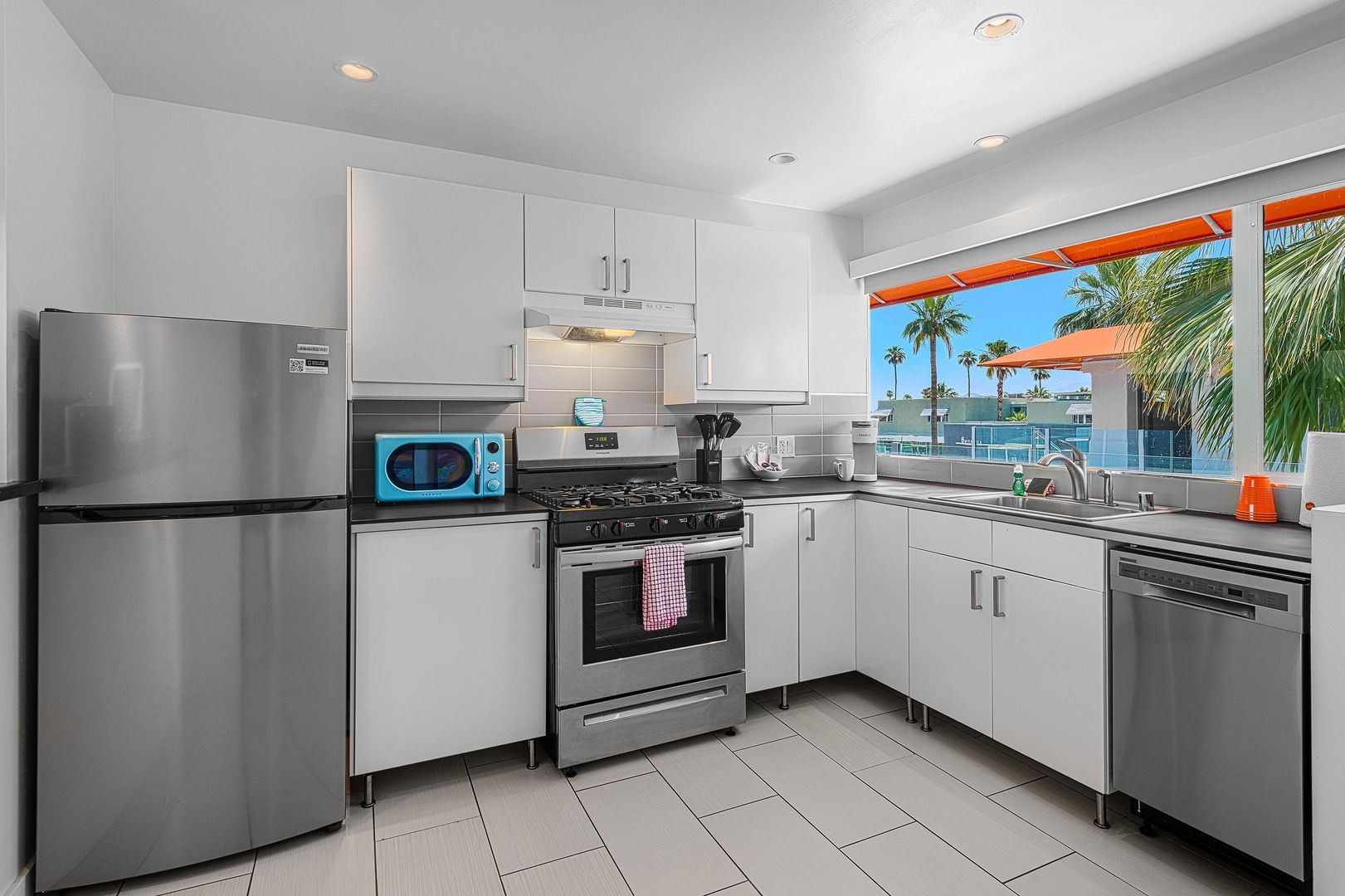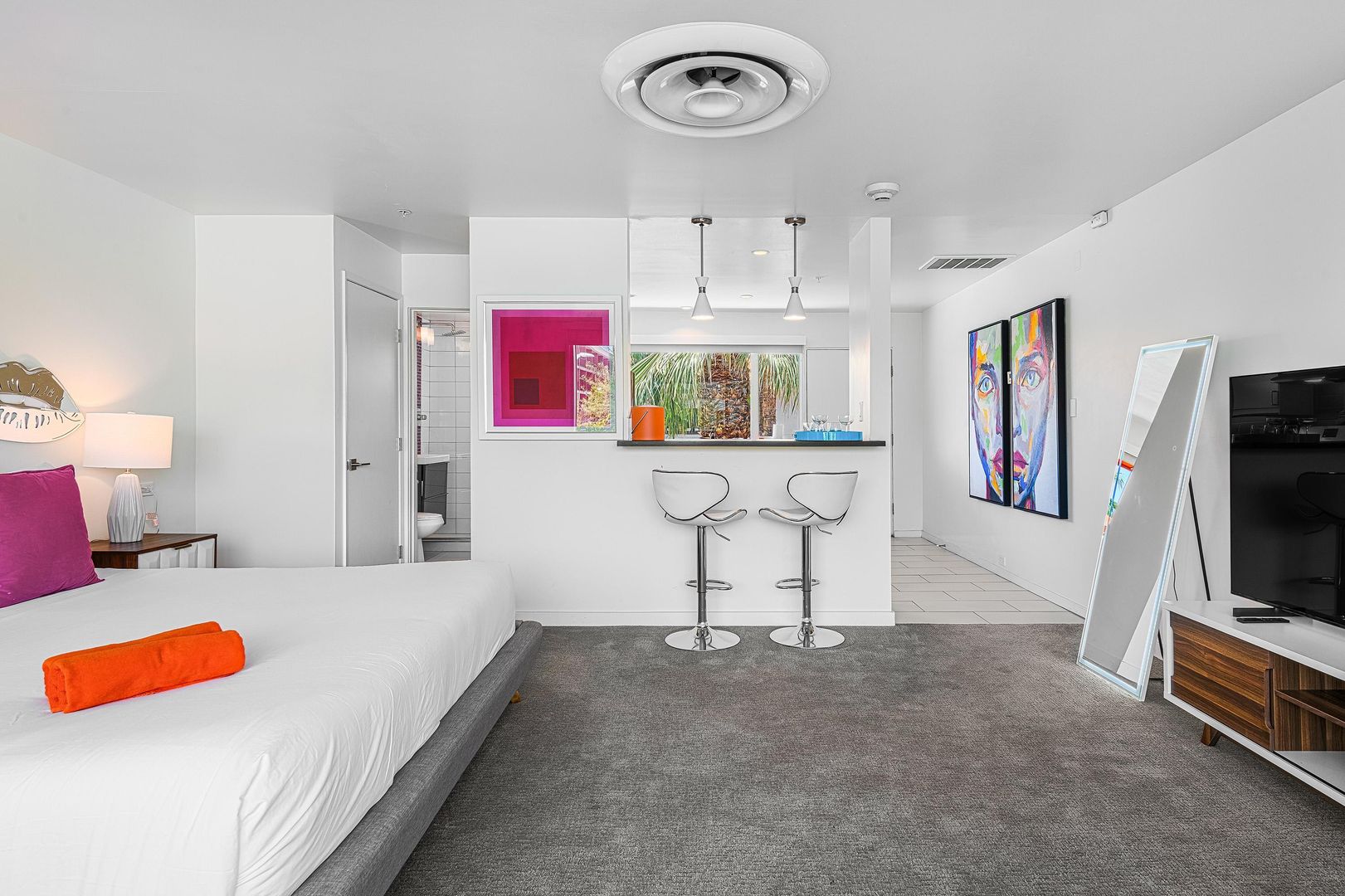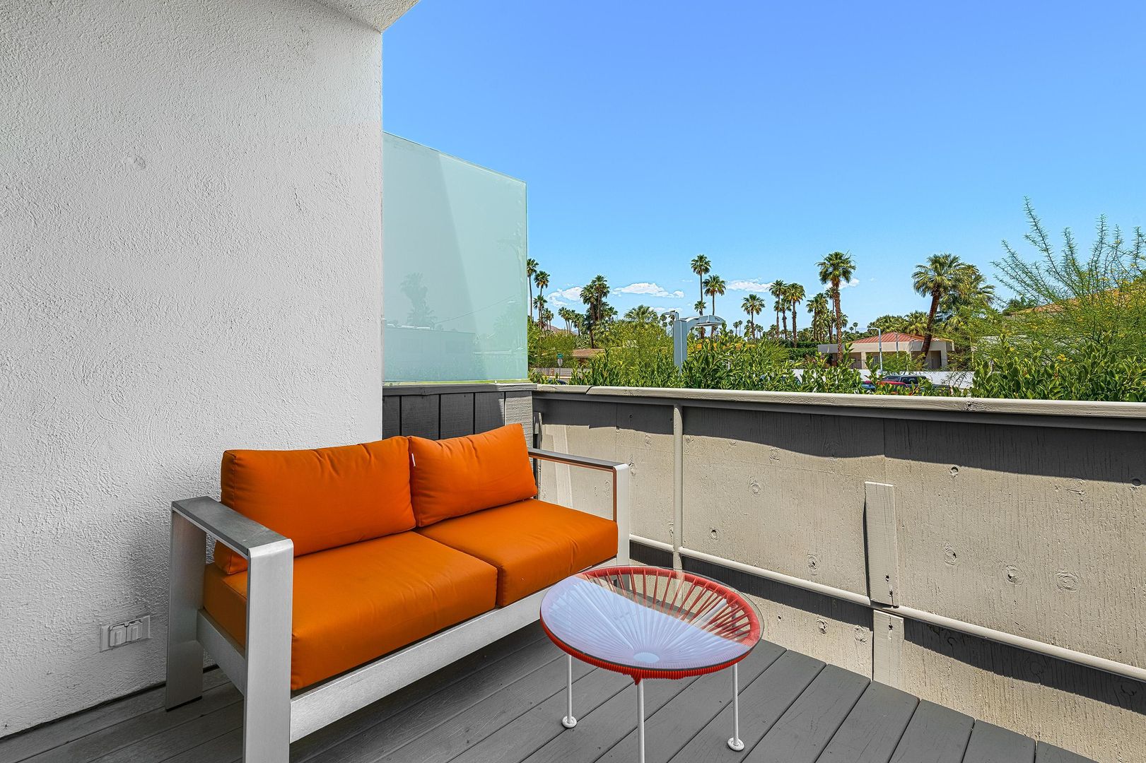 Discover the ultimate blend of comfort and style in this fully furnished studio apartment available for rent in the heart of Palm Springs. Situated in the vibrant Uptown Design District, this 629 sq. ft. gem offers a perfect retreat with a 30-day minimum stay requirement. Step inside to find a spacious layout featuring a full kitchen equipped with a dishwasher, making meal preparation a breeze. The living area extends to a private patio where you can unwind under orange umbrellas and awnings, enjoying the stunning views of the San Jacinto Mountains.