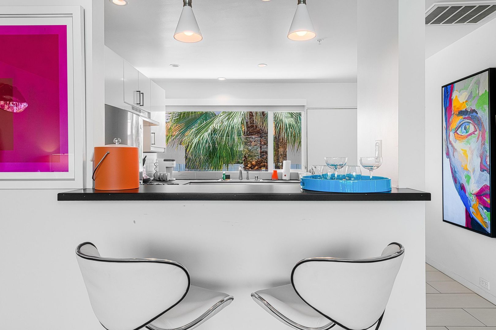 This charming studio is nestled in the prestigious Old Las Palmas neighborhood, providing easy access to local attractions such as Earnest Coffee, Bootlegger Tiki Bar, and the trendy Tailor Shop Bar. For recreation, residents can take advantage of the community amenities including a sparkling pool, relaxing spa, and a grill area perfect for outdoor gatherings. Additional perks include a laundry room, a mini golf course, and complimentary bikes for exploring the scenic surroundings. With its iconic atomic vintage decor, this apartment offers a unique and stylish living experience in one of Palm Springs' most sought-after locations.