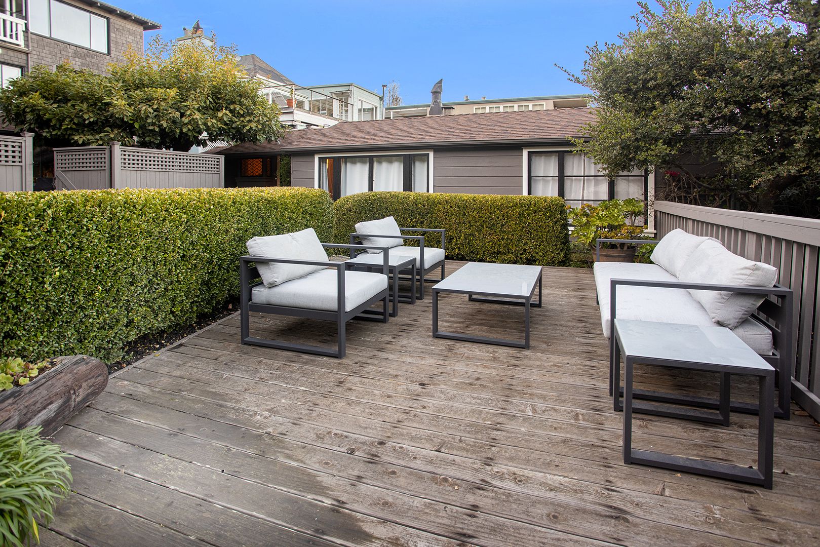 Enjoy outdoor living with a shared deck, perfect for relaxing and entertaining. Additional perks include a one-car garage with ample storage, as well as plenty of street parking.